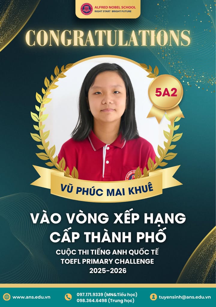 Hàng năm ANS tổ chức các kỳ xét Học bổng tài năng nhằm ghi nhận và vinh danh học sinh có thành tích học tập cũng như năng khiếu vượt trội. Nhà trường cũng chú trọng tổ chức các hoạt động trải nghiệm, các cuộc thi, các sân chơi về thể thao, Tiếng Anh, Khoa học, Nghệ thuật….giúp học sinh cọ xát, gia tăng sự tự tin và phát huy các thế mạnh của bản thân. Học sinh luôn hứng thú khi được tham gia các Sự kiện và các Hoạt động ngoại khóa, Outing; Hoạt động phát triển kỹ năng; Tham gia các CLB Mỹ thuật sáng tạo; CLB Cờ vua; Bóng rổ; Bóng đá; STEM…từ đó giúp học sinh phát triển toàn diện về trí tuệ, kĩ năng, cảm xúc và thể chất.