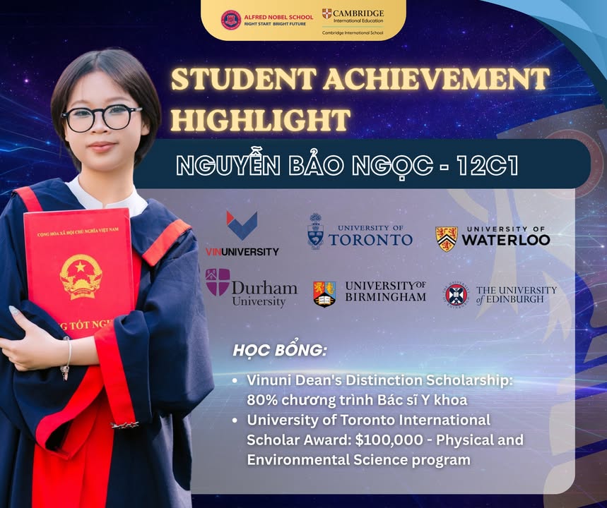 Alfred Nobel School hướng tới mục tiêu trở thành môi trường giáo dục tiên phong – nơi trang bị cho học sinh nền tảng vững chắc thông qua sự kết hợp hài hòa, hệ thống và có tính kế thừa giữa chương trình Giáo dục phổ thông Việt Nam và chương trình Quốc tế Cambridge