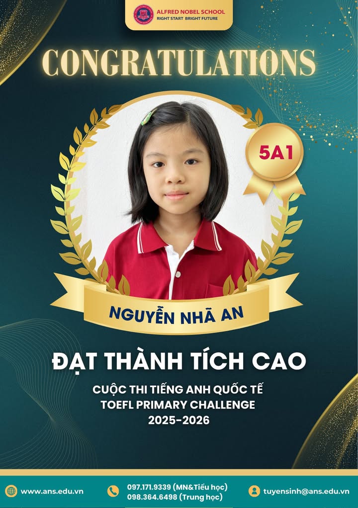 📘 Bằng sự chăm chỉ, tinh thần học hỏi không ngừng và niềm yêu thích tiếng Anh, các em đã nỗ lực hết mình để chinh phục thử thách tại sân chơi học thuật mang tầm quốc tế. Mỗi thành tích đạt được hôm nay là dấu ấn đáng tự hào trên hành trình trưởng thành của các ANSers.