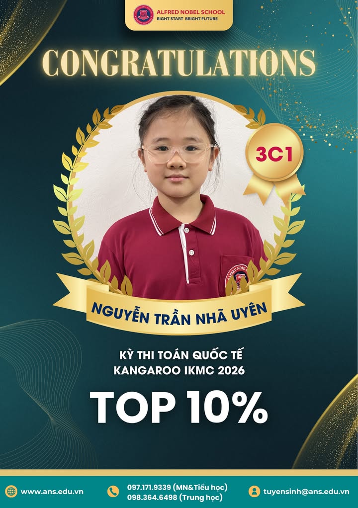 Nhà trường xin ghi nhận và vinh danh tất cả các em học sinh đã tích cực tham gia kỳ thi. Sự tự tin bước vào một đấu trường quốc tế, tinh thần ham học hỏi và nỗ lực không ngừng của các em chính là những thành quả đáng tự hào nhất.